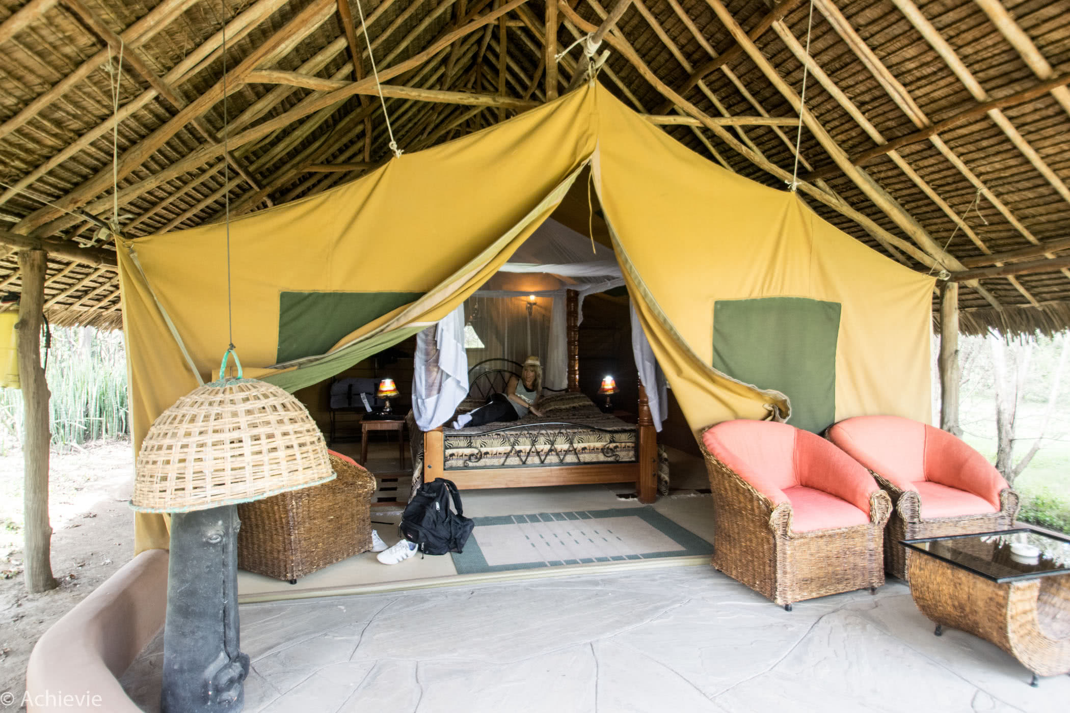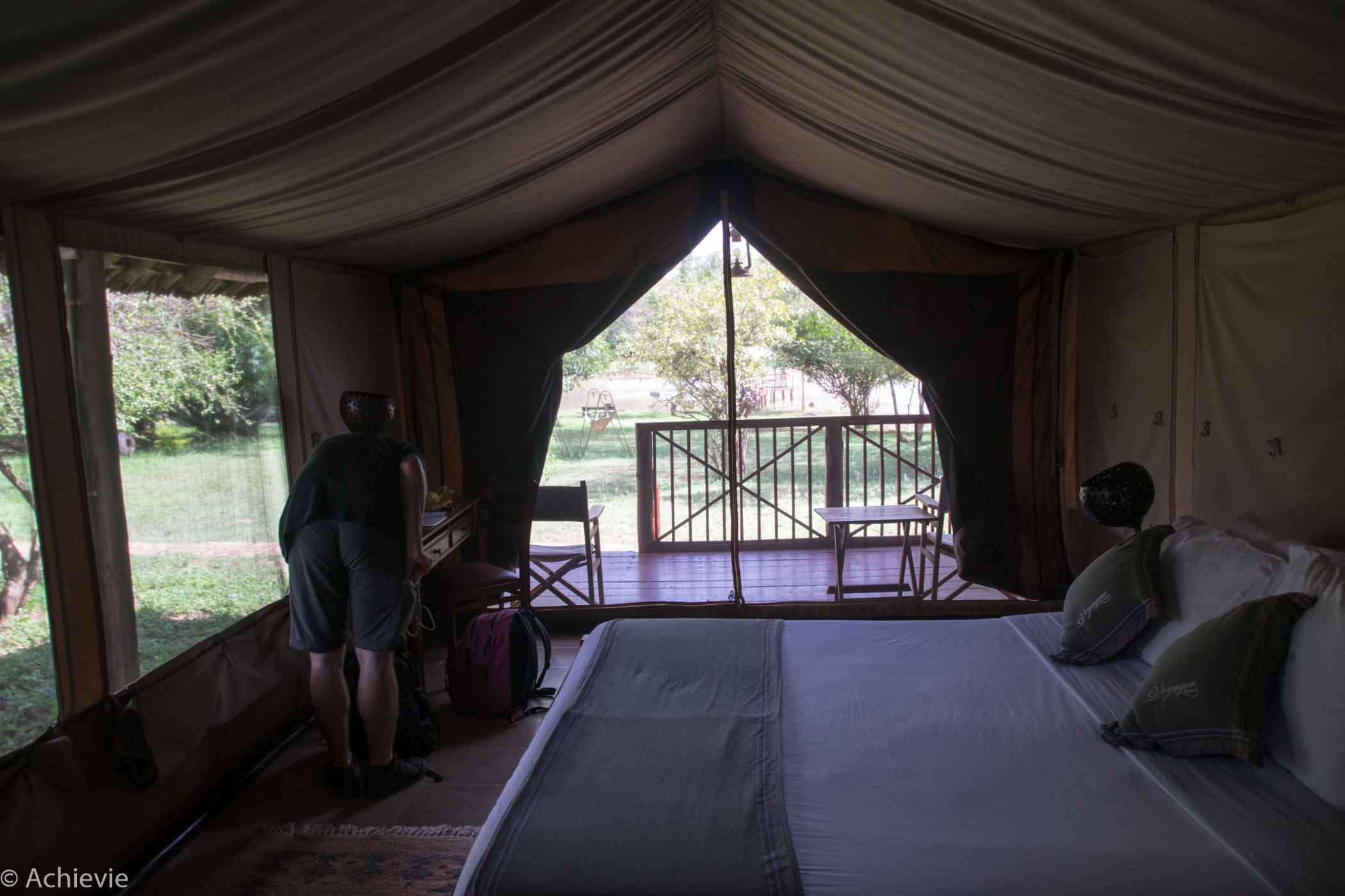 The camp offers 25 guest tents in a homely setting making you very comfortable when visiting Lake Nakuru. The tents reflect a classical safari experience with a traditional hut-style shaded structure. The common areas are welcoming, cosy and just ideal to relax and enjoy great food. The chefs preparing our food were super friendly, as was the staff in general. A swimming pool with comfortable chairs in the garden overlooking the savannah just top it all off.