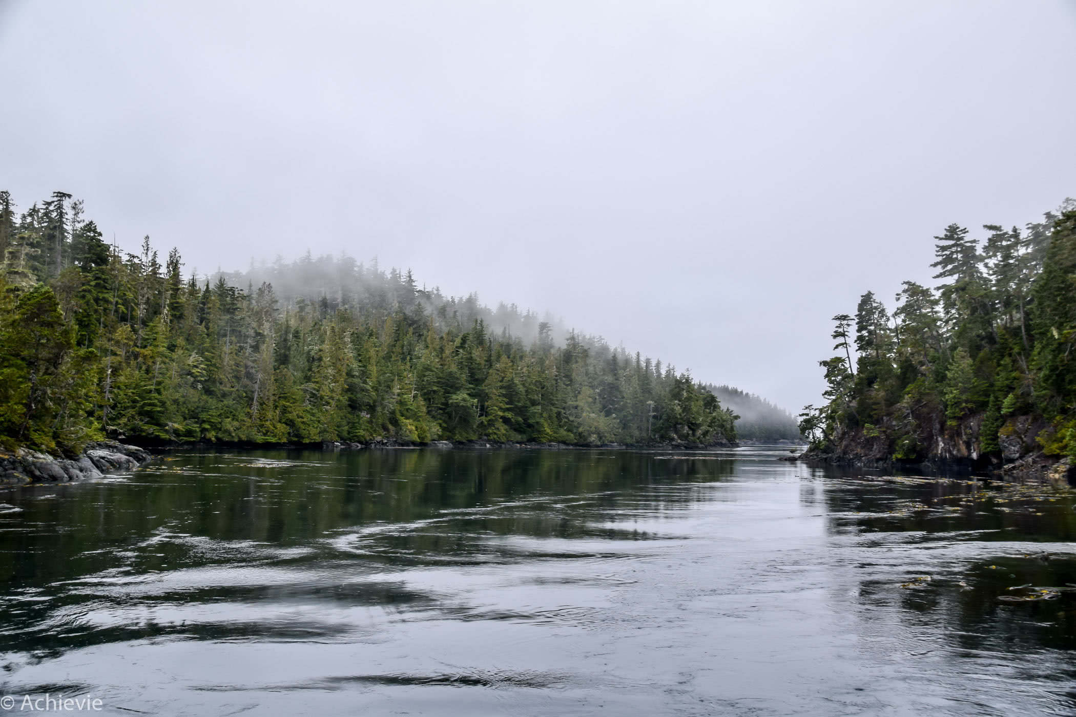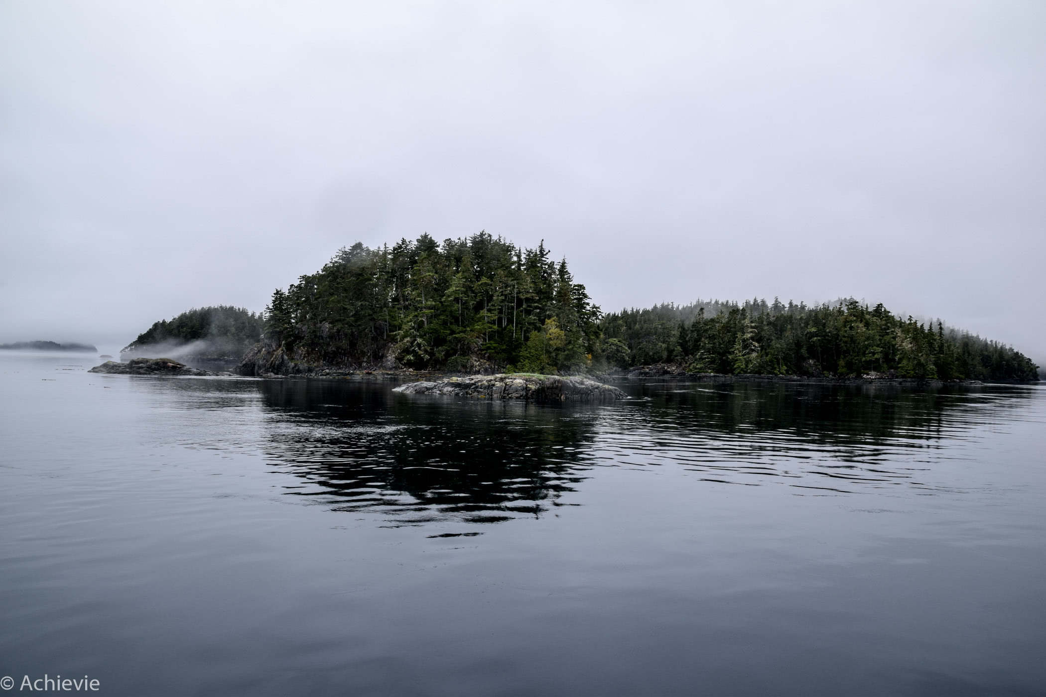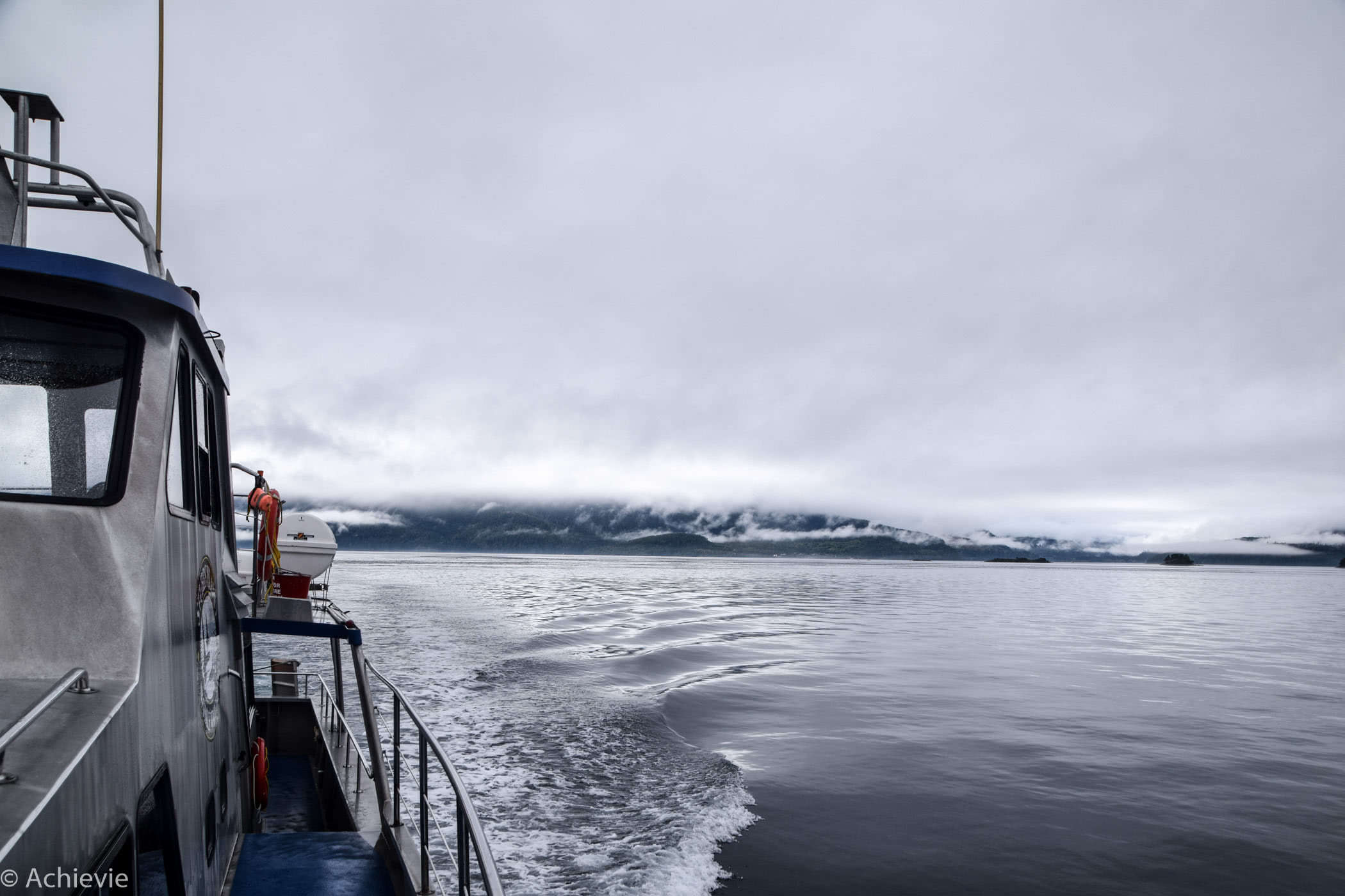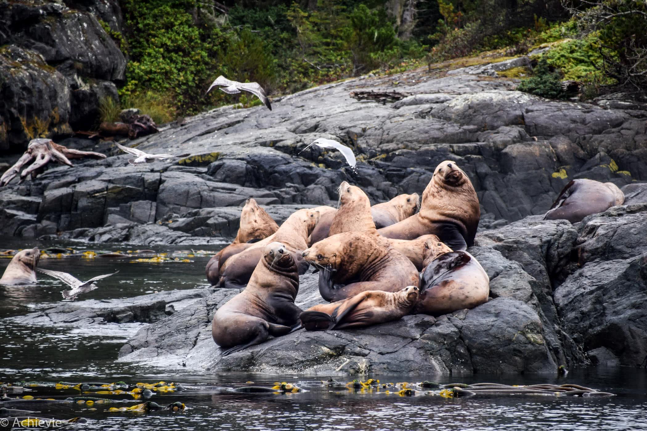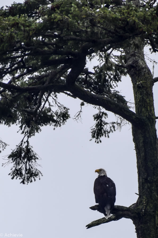 The trip took about 3,5 hours, guiding us through the passages and around the islands. It was an amazing setting. Although it was raining for most of the trip – and cold, of course – the fog added a very mysterious vibe, together with the eagles shrill sounds and the blowing of the whales. And we saw more than we could hope for. At a certain point we could literally look down a humpback whale’s mouth, when he reached up to catch some fish. A majestic bald eagle was sitting on the top of a tree hanging his wings to dry. To catch the orcas on camera, we really had to be quick, which wasn’t too easy, as you also needed to be lucky with where you were standing on the boat. To watch, hear and smell the Pacific harbour seals on the other hand, we had plenty of time – there’s a lot of them laying around on the rocks and “barking” at each other – so funny…