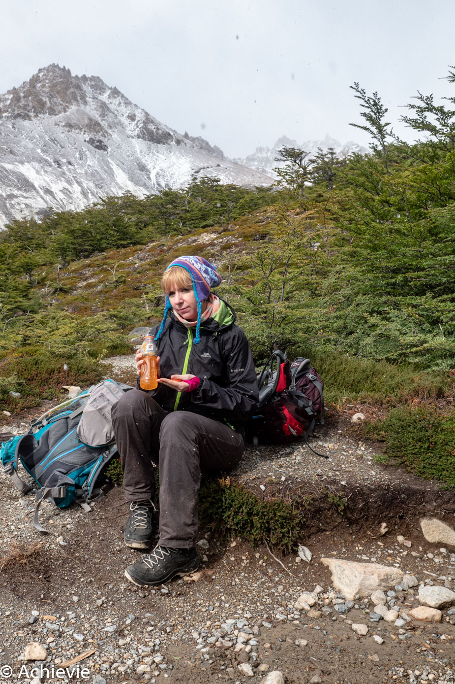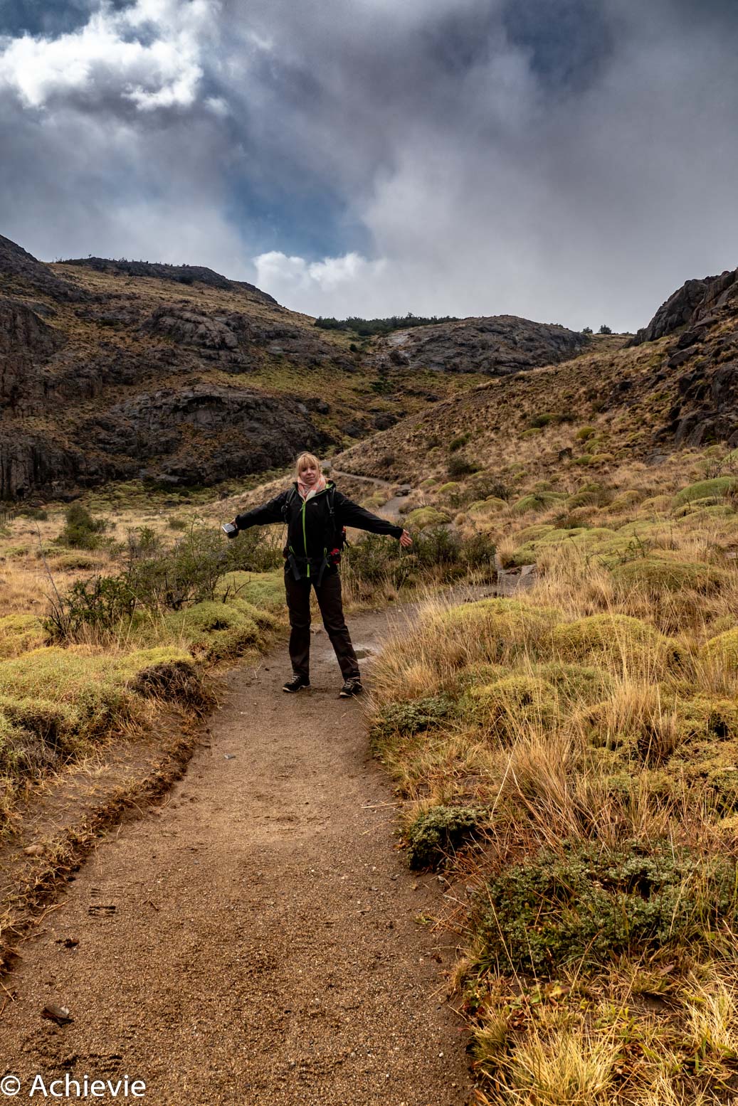 By the time we were registered at Cumbres Nevadas, we saw – to our surprise – some rays of sunshine coming through. We didn’t hesitate a bit, got our rain coats on again and went for the short hike “El Mirador de los Condores”, which is about 1km from the visitor center (one way) and that took us 1 hour return. It stopped raining for a while, still heavy winds, but so happy that we got some great views.