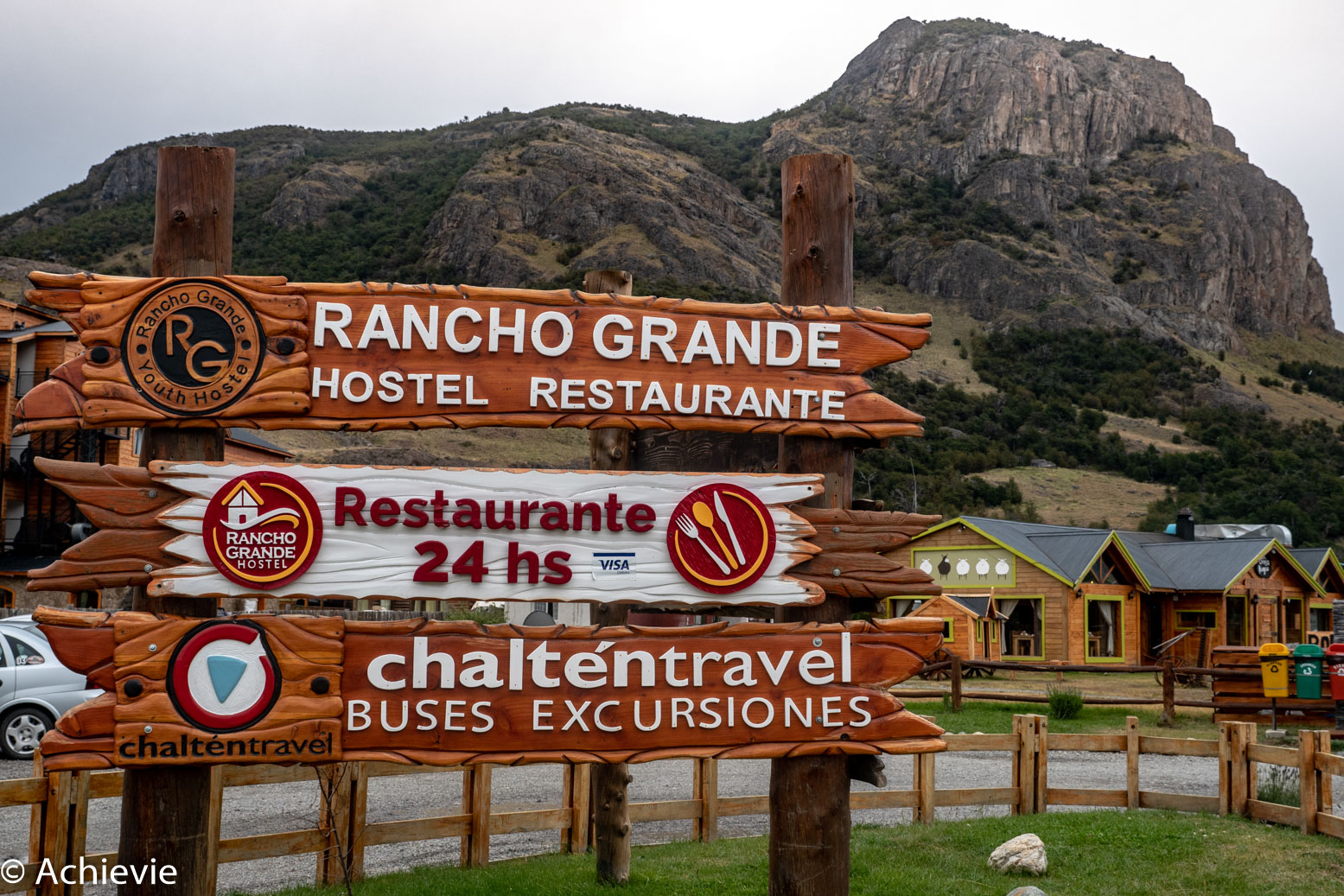 As private transport was rather expensive, we booked our ride to El Chalten with Las Lengas Transporte (about 75 EUR). Our mini bus was quite full, but comfortable enough to get all 15 of us (and our luggage!) to our final destination. It was a beautiful day, so we could enjoy the wonderful scenery – 3 hours were over in no time. Along the way we saw quite a few horses, but also guanacos and a choique (looks like a ostrich, but smaller). We made a short stop at Hotel Leone, right in the middle of our trip. Mostly for a bathroom stop and possibly a hot coffee, as it’s not really a very scenic outlook.