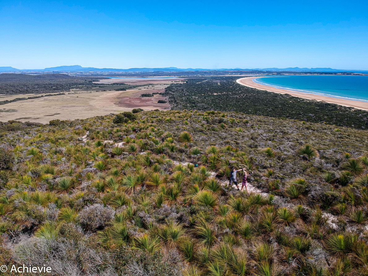 Narawntapu is a totally different type of scenery. The Archers Knob track has a sandy road all the way and is very “chill”. It first goes through bush area, with a Bird Hide hut (after only about 20 min down the track) to watch the different (water) birds. As the area was super dry, there was no water at all and therefore also no bird life.