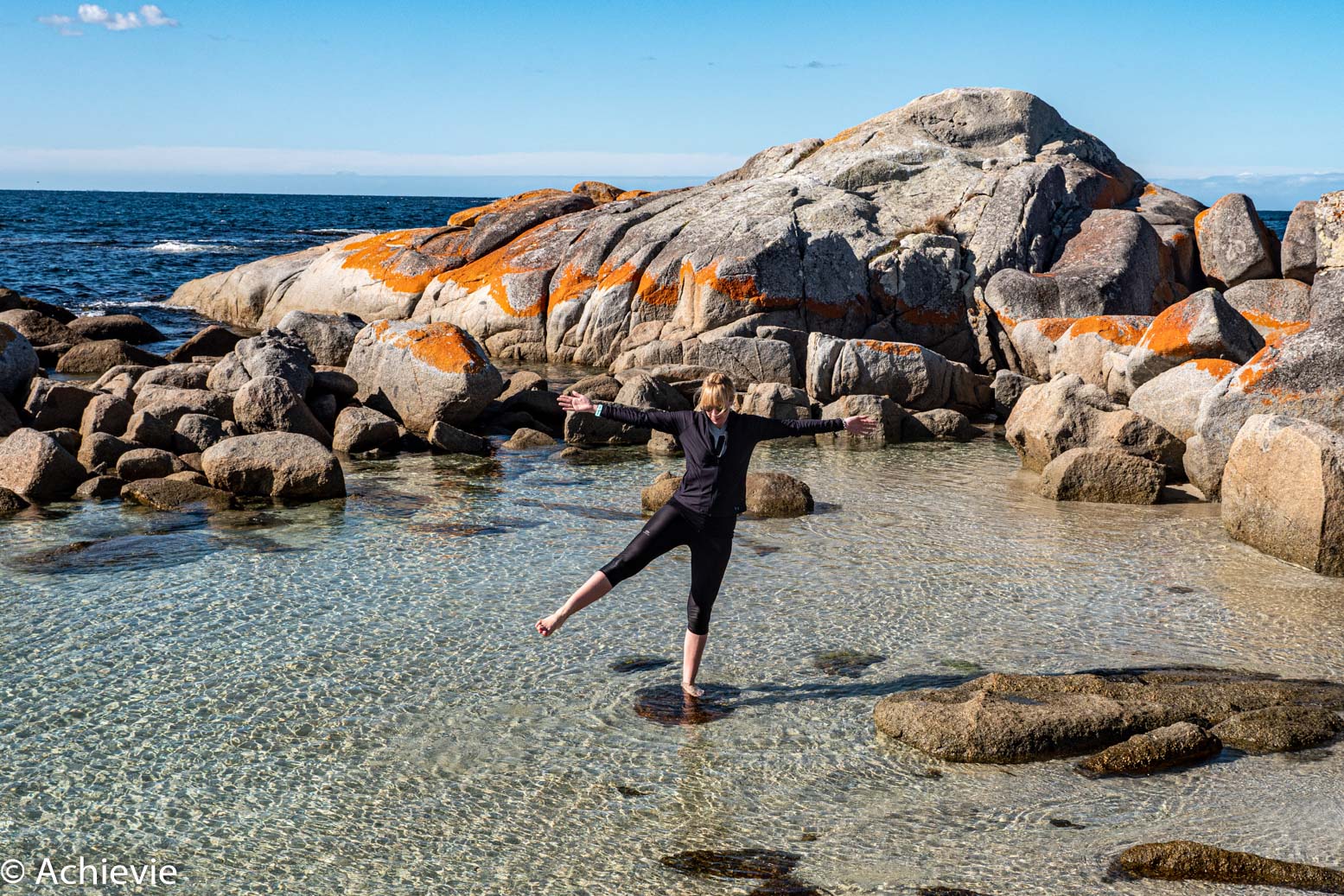 Perfectly possible to do this in 2 hours. We first went to The Gardens (on the way from St Helens, take a left on the junction with Binalong Bay straight ahead and The Gardens 6km on the left), which has an abundance of rock pools and masses of rock formations. As you leave the parking area, the rocks immediately emerge. You can go onto them. As you continue the sandy stroll along the rock formations, you end up a small beach where you can enter the very cold water and take some other great shots. You can also go to the viewing platform on top, where you can look at all this dramatic scenery from a distance. As we visited later in the day, the late afternoon sun was ideal for some more dramatic effects.