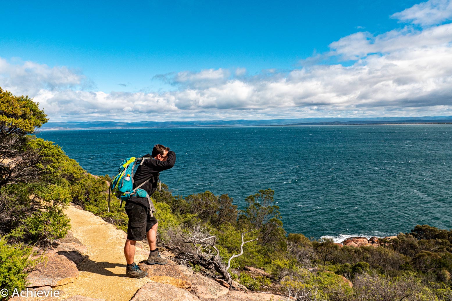 Continuing the track, there’re different side tracks on the left, taking you to the beach. At the end of the track you take a loop around the 114m high Archers Knob mountain, which provides you great views of the bush as well as Bakers Beach and Little Badger Head. We were really fortunate with the weather – no cloud in sight, which makes it extra special. Only downside were the millions of flies annoying us the entire time.