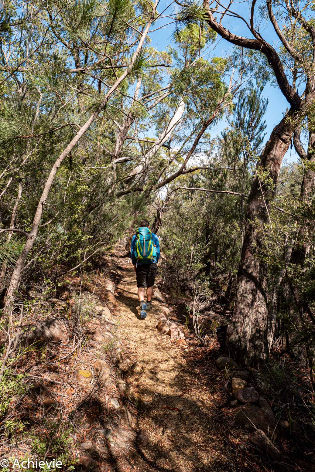Different tracks to chose from, from easy to difficult and from 10 minutes return to 5 hours circuit. We chose the Wineglass Bay/ Hazards Beach track, which is a 12km moderate circuit which we did in 3,25h. It’s categorized as a grade 4, with rough and steep sections. We started with the beach part first (up to the Hazards Beach), which is pretty flat. Some short uphills, but nothing too difficult. The part on the beach is not too long and is a welcomed change from the bush surroundings.