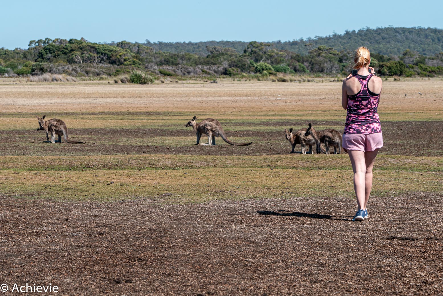 Going back down the same path, pass the beaches until you reach a junction with “Springlawn Loop”. Take left to Springlawn Loop and you end up into the swamp area where the Bird Hide out was looking over at. It reaches as far as the eye can see and is habituated by kangaroos. We saw about 10-12 of them. It’s the first national park we’ve been at in Tasmania where there’re kangaroos, so enjoyed this very much.