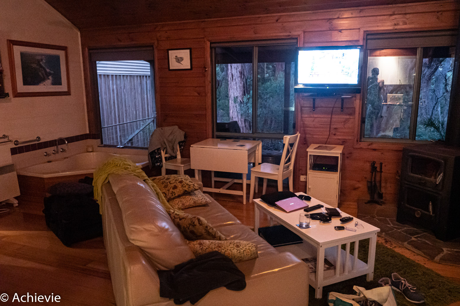 Typically, we want to spend our last night(s) at a slightly nicer location. After searching on the net, I chose Cape Otway Cottages and more in particular the Moonrise Cottage. We were very pleased with it. Totally private, surrounded by trees in which tens of parrots as well as at least 1 koala and possum live, a very neat cottage with a bubble bath looking out on the forest. A lot of windows all around the cottage, so you can check the bushes from all different angles to spot for animals. If you need to get up around sunrise, I also suggest to just leave the blinds open. Nothing better than to be woken up by the first rays of daylight.