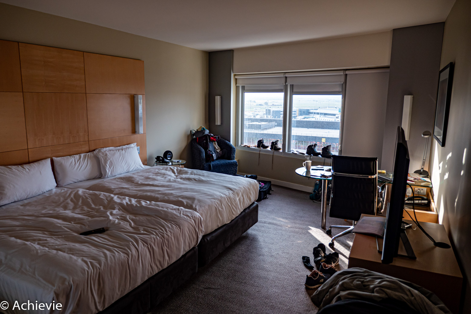 Very convenient – right opposite to the exit/ entrance of the airport. Happy with the room, cosy bar and restaurant area, tasty breakfast (choice between continental, buffet or à la carte) and dinner. Great views (if you’re room is at the right side of course – we had room 939): you can see every plane taking off and landing. Only downside are the single glass windows – so you not only see but also hear the planes, which is not so optimal.