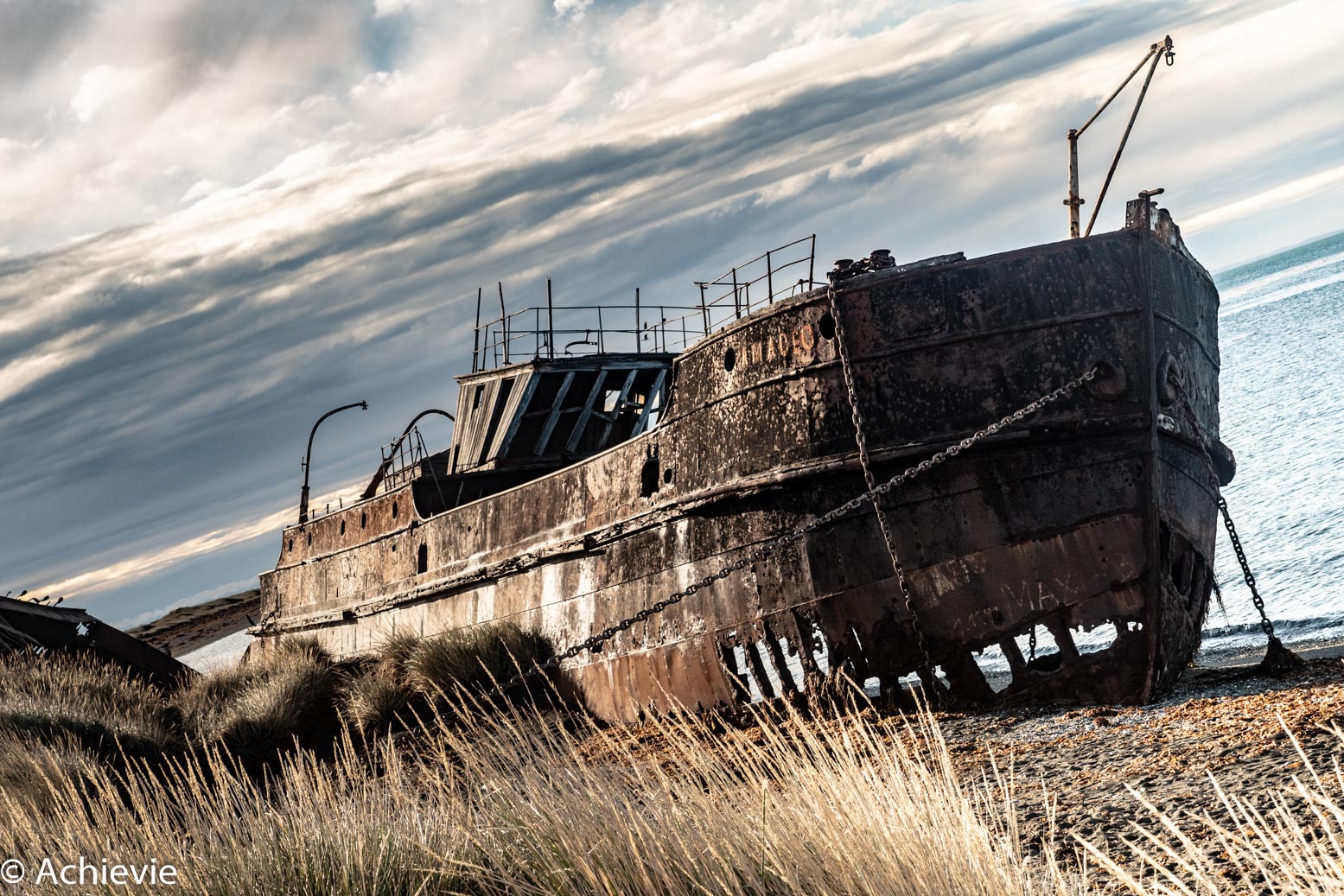 There’s 2 terminals to go to the island. The one, where you start in Primera Angustoro in Tierra del Fuego only takes about 20 minutes to reach by ferry – that’s the one we took in the morning, after a 2 hour drive from Punta Arenas to Punta Delgada. We made a stop at Estancia san Gregorio, which is a facility originating from 1878 from where wool was exported. It’s currently abandoned, but the first steam boat that was taken to get the goods across actually still resides on the beach a little further. In principle the tour should also include a visit to the Fernando Cordero Ruesque Museum, but as it was a Sunday when we did the tour, it wasn’t open.
