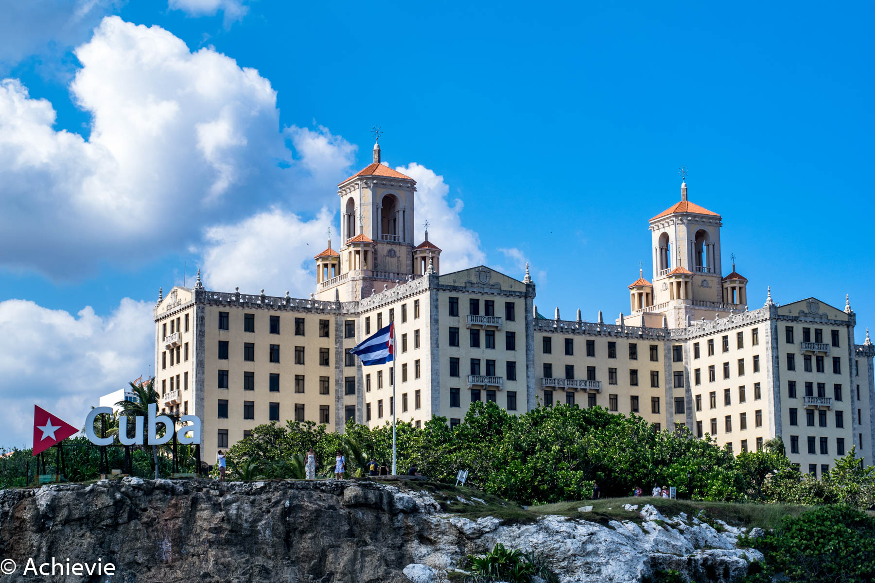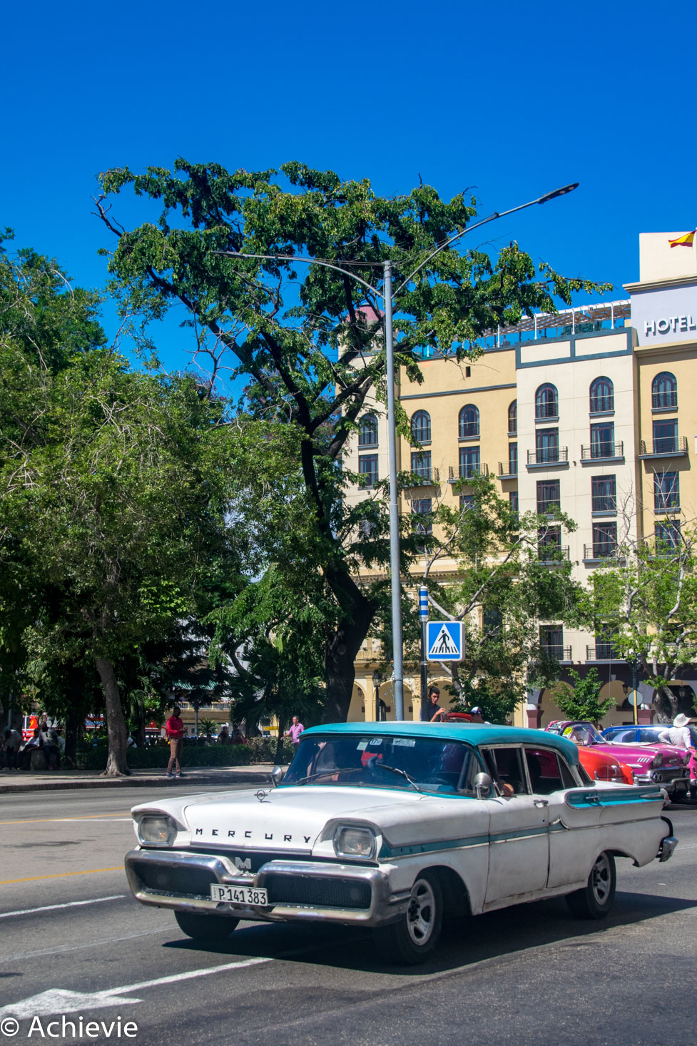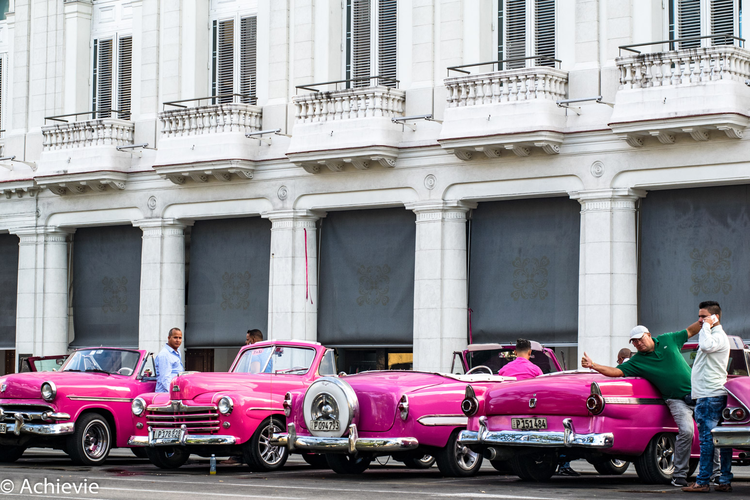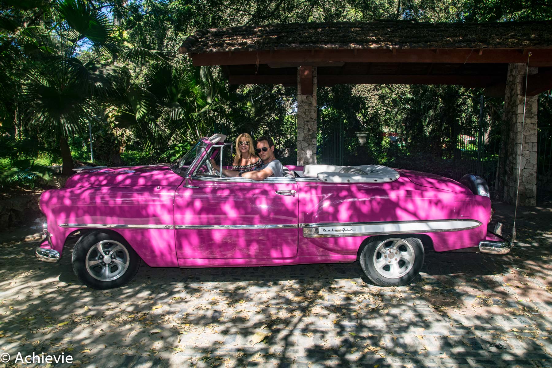 Afterwards we walked a little further and were picked up by a classic pink Chevy convertible. We deliberately chose that before – for sure it needed to be a pink one. The driver was totally in tune with the car. We took place at the backseat and enjoyed the right while soaking up the views. We made a stop close to the Plaza de la Revolucion, the Bosque de La Habana and before the hotel that was run by the mob and more in particular Al Capone back in the days.