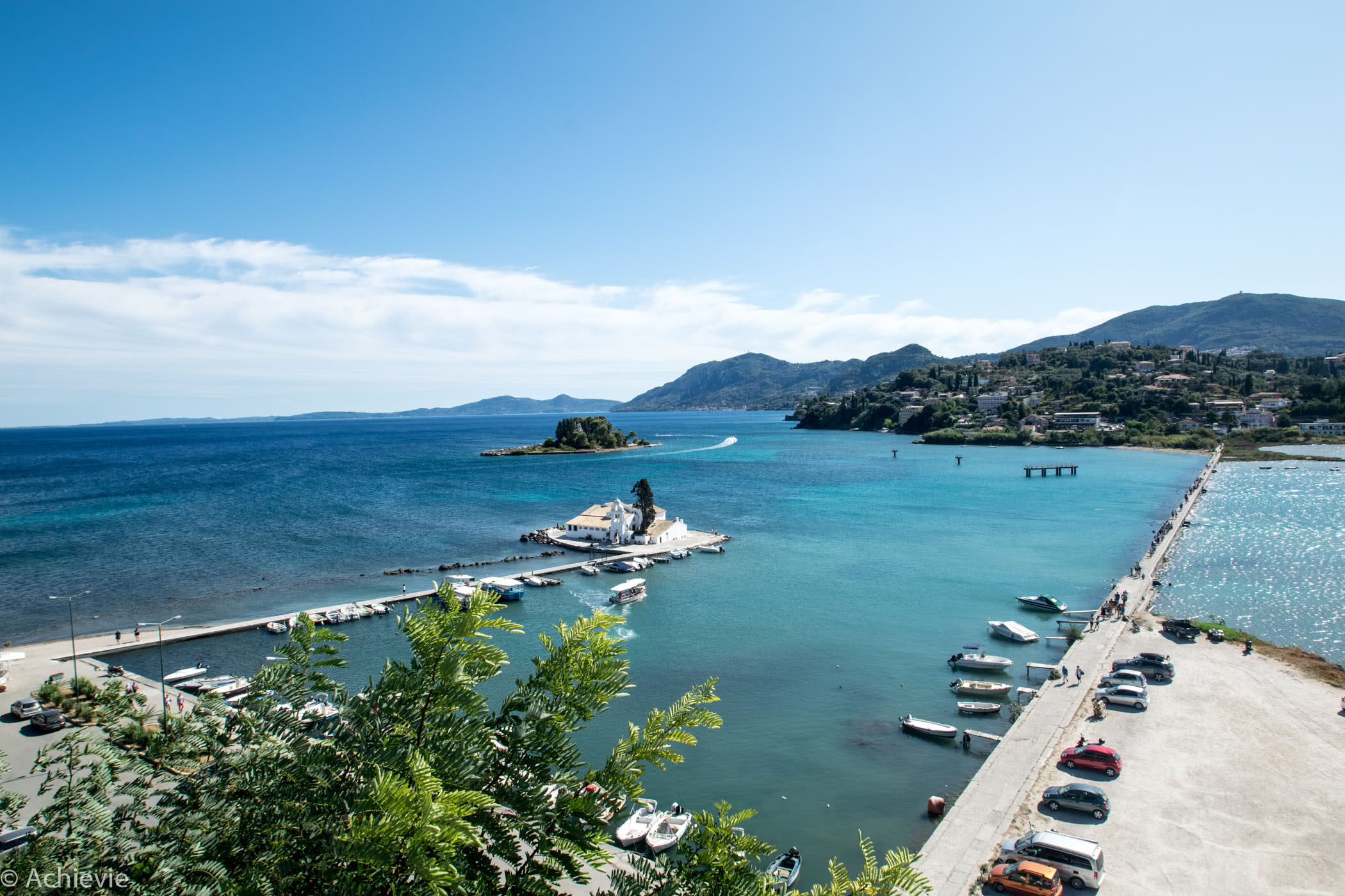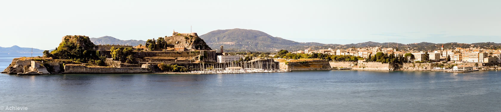 The first view of Corfu from the sea is the medieval town of Corfu, surrounded by fortresses, with narrow streets (our bus only barely made it through them) and tall buildings.