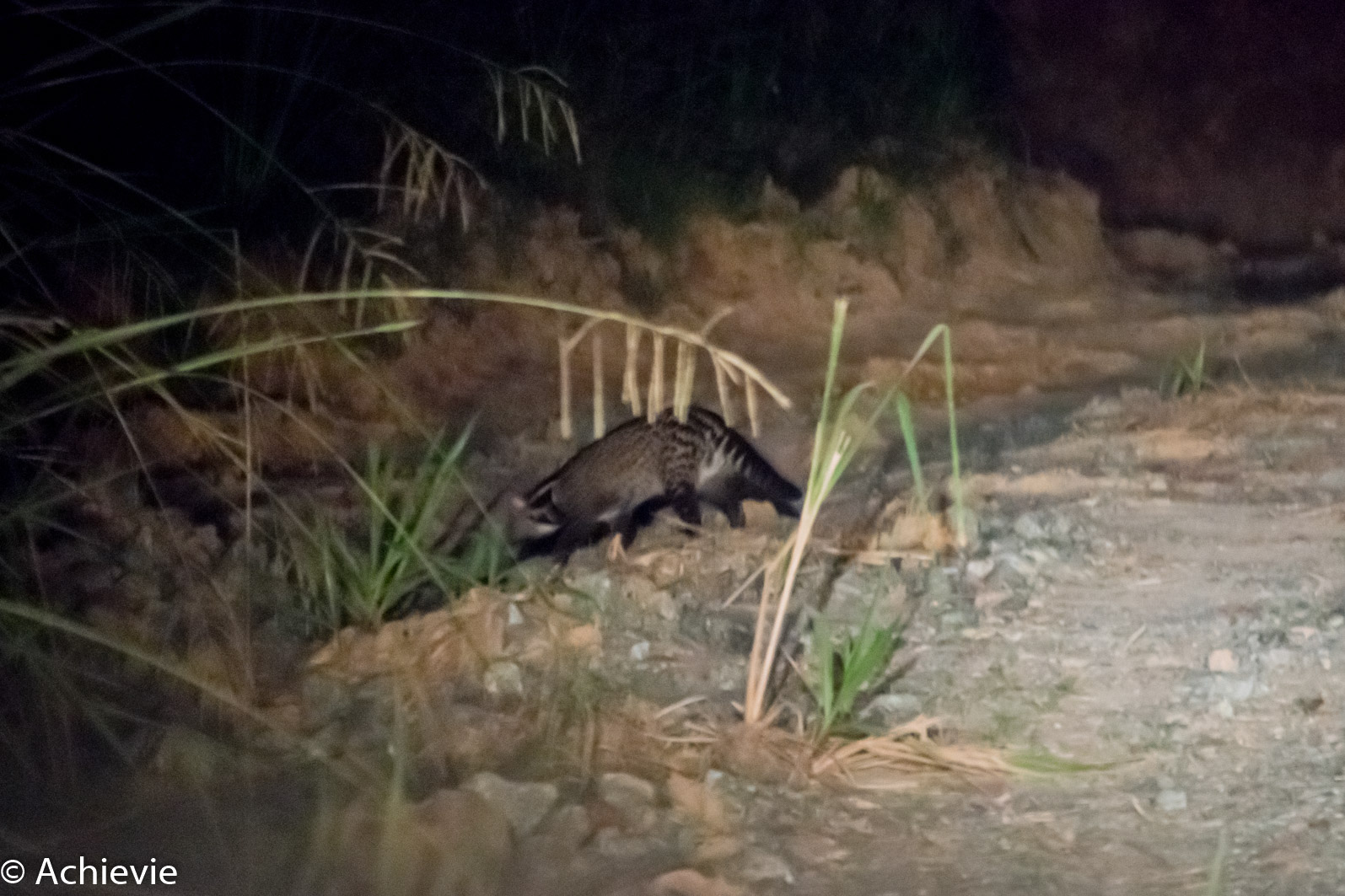 One tip… make sure to take precautionary measures when you get out there in the dark. Certainly when driving. You guessed it… in order to actually see the animals you of course need lights. Typically the big ones on top of the car, but also smaller flashlights to shine into the grass along the side of the road to catch a reflection in the animals’ eyes. And when you’re standing still and your light’s still on it’s insect invasion! OK, admitted – I’m not fond of insects (that’s an understatement) – but they’re huge! And they sting! I got one (I don’t remember what it was) on my finger. I tried to shake it off, but that wasn’t the best idea, it turned out… It stung and I felt the poison (harmless, but stingy) entering my blood stream. That part of my finger was sore all through the next morning! I sound like a sissy, I know… It wasn’t that bad, but I’m just saying: be prepared. Put something on your head, cover your mouth and nose and get your sleeves over your hands. Then you’ll be all right.