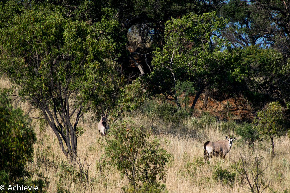 For our bush walk the next morning, the skies had cleared and we could enjoy the beauty of the place even more. Aside from the wonderful scenery we also spotted a few Oryx and a chameleon along our 1,5 hour walk. When returning to the Camp we saw the baboons running up the mountains, while their shouting loudly echoed, making sure everyone knew they were running the place. The friendly staff offered a nice cup of coffee and after the walk we had our breakfast (which we had also bought the day before).