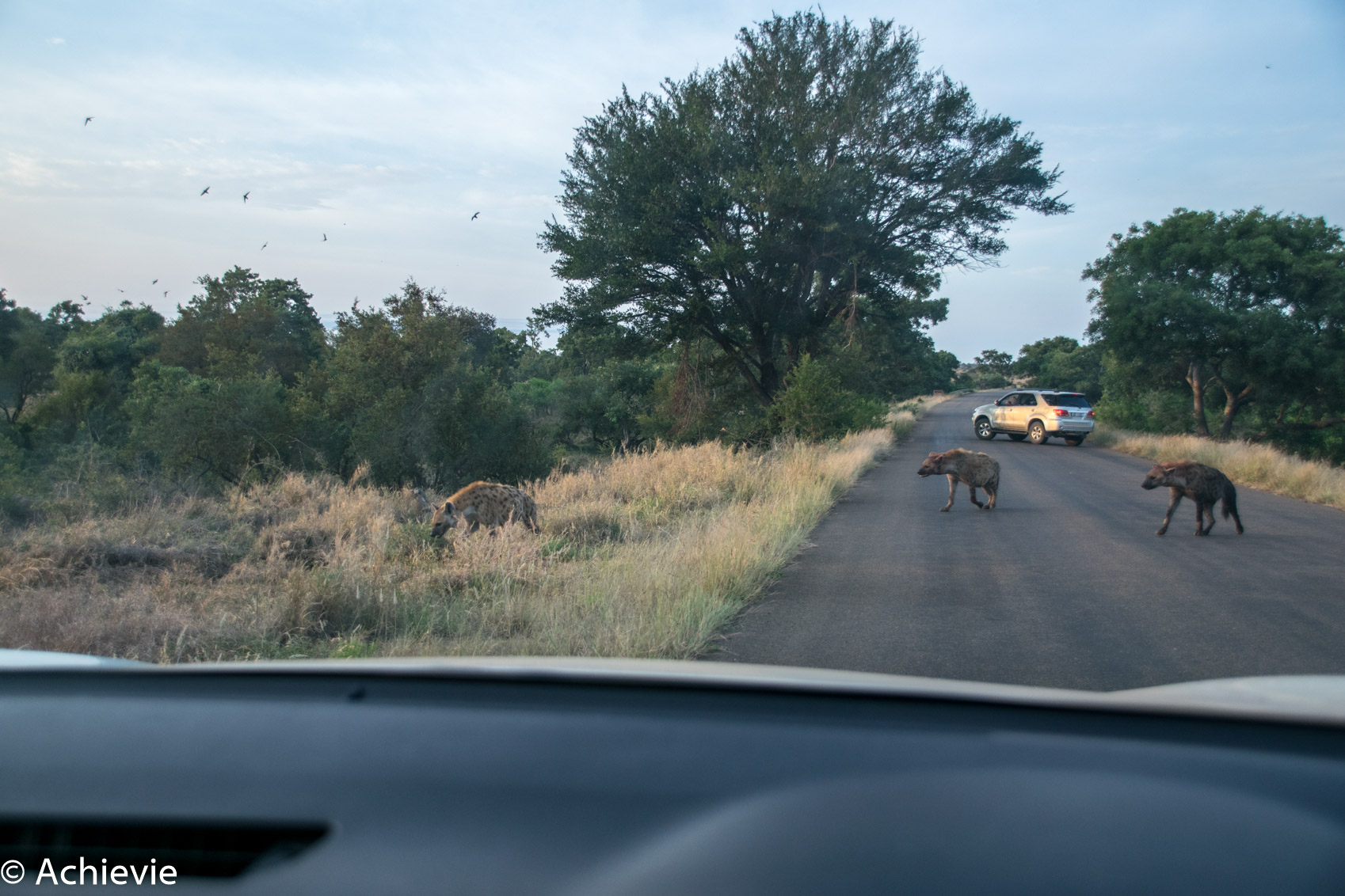 Everything depends on luck, of course. And patience – but most of the time you just see it or you don’t. Luckily, my husband is a great spotter. At times, we would shortly follow a ranger vehicle to check whether they would see anything that we wouldn’t. One time that really helped, when we knew there were cheetahs spotted, very close to Satara rest camp. But then again, 3 other vehicles were lining up as well, so we would have realised something was going on anyway…