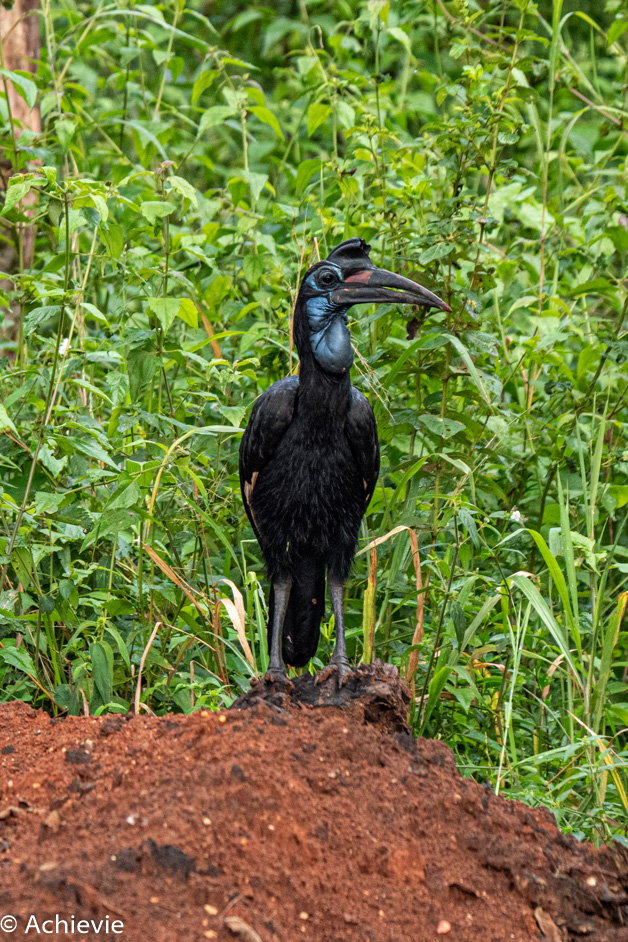 On this morning game drive we saw hornbills, giraffe, hartebeest, Ugandan kob, oribi, warthogs, elephant, jackal (our first and only predator this vacation!), buffalo, hippo and – right at the end – patas monkey.