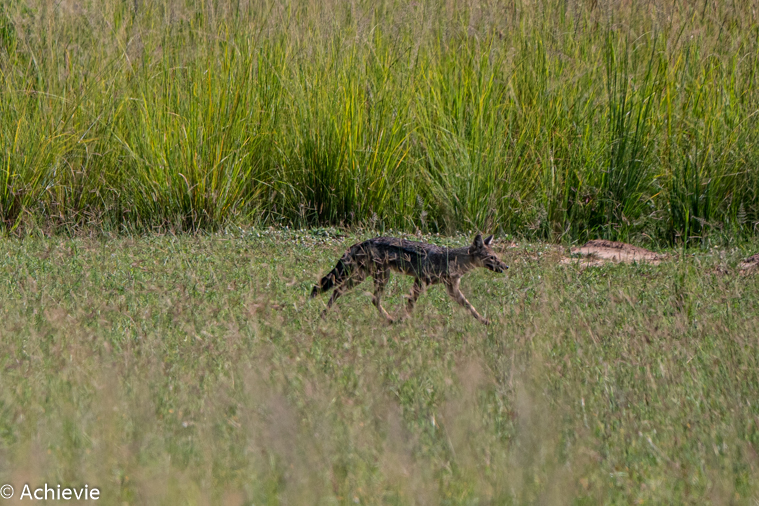 The Honeymoon track itself (first part before the Kob Leks) is very dense. High grasses on both sides, so literally nothing to see. We only saw a bunch of squirrels crossing over the narrow road. At one point a warthog – that’s it. And there was no chance to open any window, as the tsetse flies were back and having a ball infesting our car. As the sun was warming up the late morning pretty quickly, it soon became uncomfortably hot in the car.