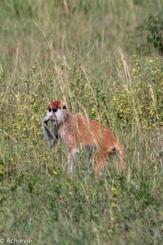 One arrived at the North bank, it’s straight ahead for about 8km, until you get to an intersection on which you have to go left to the airstrip. The map is correct on this part (except for the indication of the airstrip). Following the airstrip road, you’ll get to the intersection where you can chose to go for the Albert track (which we had read is less interesting in game viewing and has tsetse flies). The Queen’s track would be the preferred one, so that’s the one we took. It ends up in Kob leks. Then we went down to Delta and back up to Hippo point. By then it was already close to 11am. Suddenly we saw the patas monkeys in the higher grasses and stopped to try and get a few good shots – not easy!