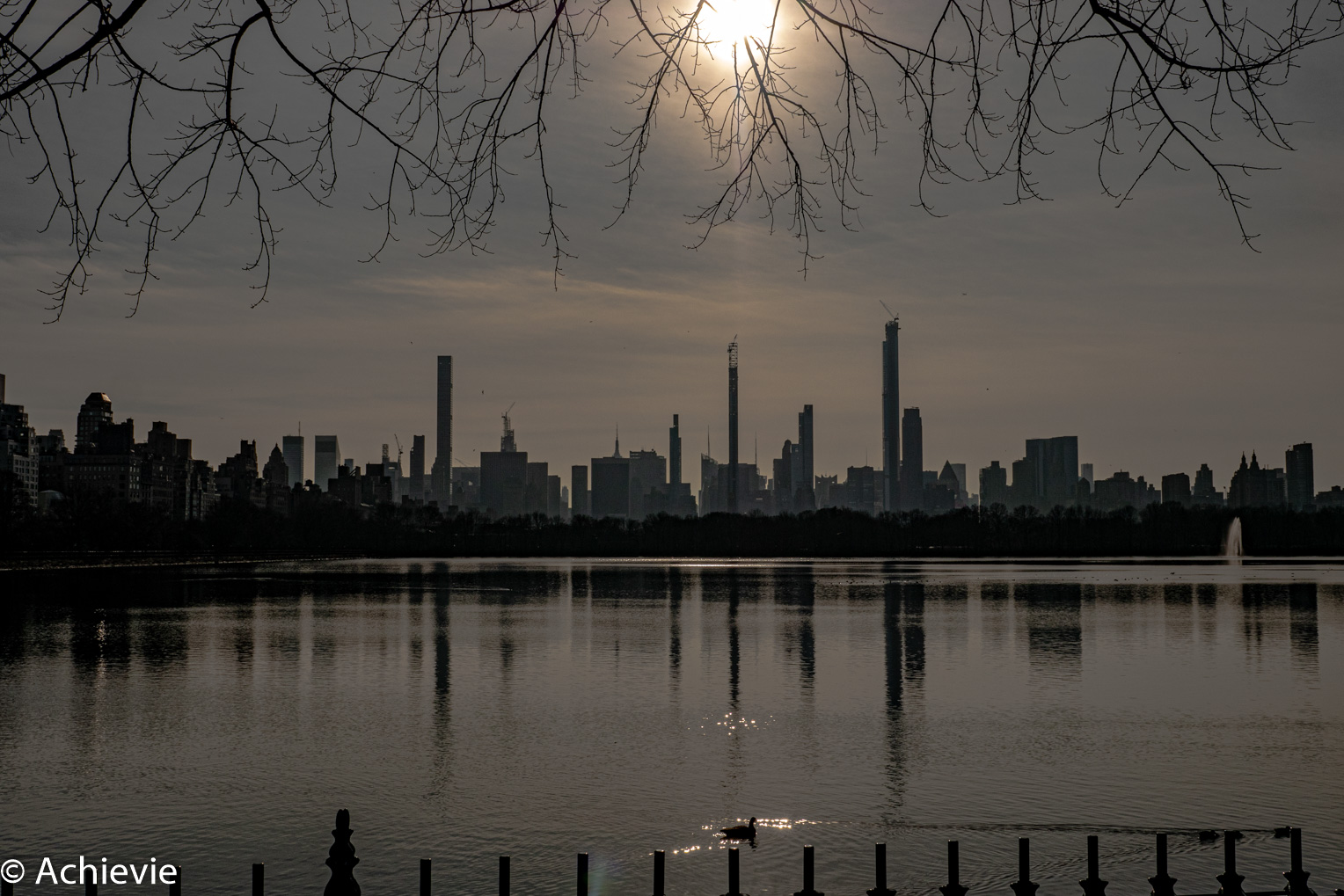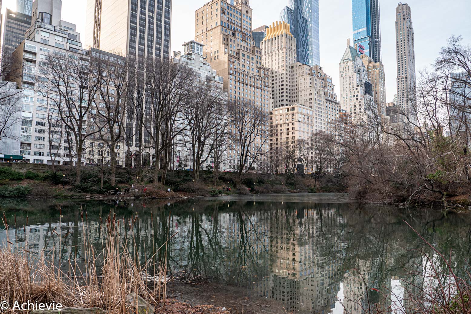 As we wanted to see Central Park in a more relaxed way as well (and take some pictures), we went back after lunch, passing Times Square (where preparations were in full progress for New Year’s Eve) and Rockefeller Center with the ice skating rank and Christmas tree. A lot of people at the South side of the park. As it was a beautiful day, it remained pretty busy, but the further you go into the park, the calmer it gets. We walked up until the Jacqueline Kennedy Onassis Reservoir and walked all along the pathway along the lake.