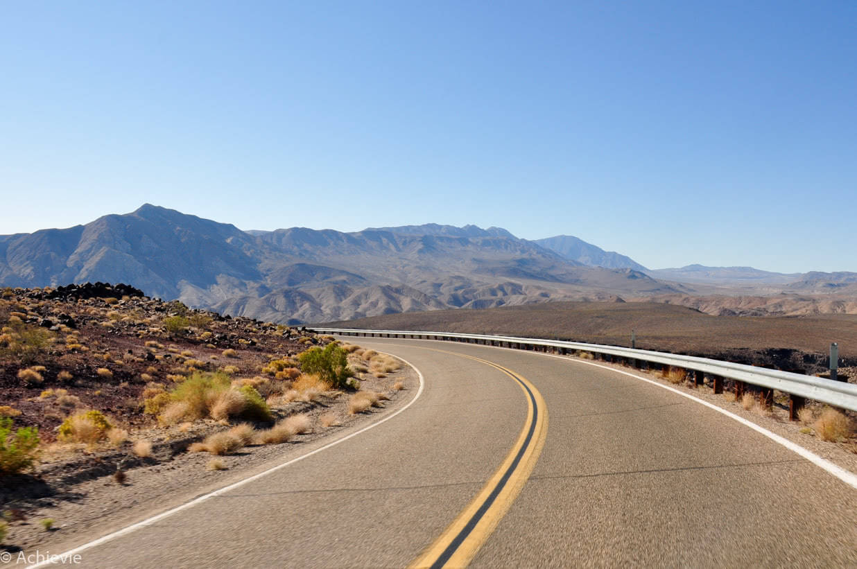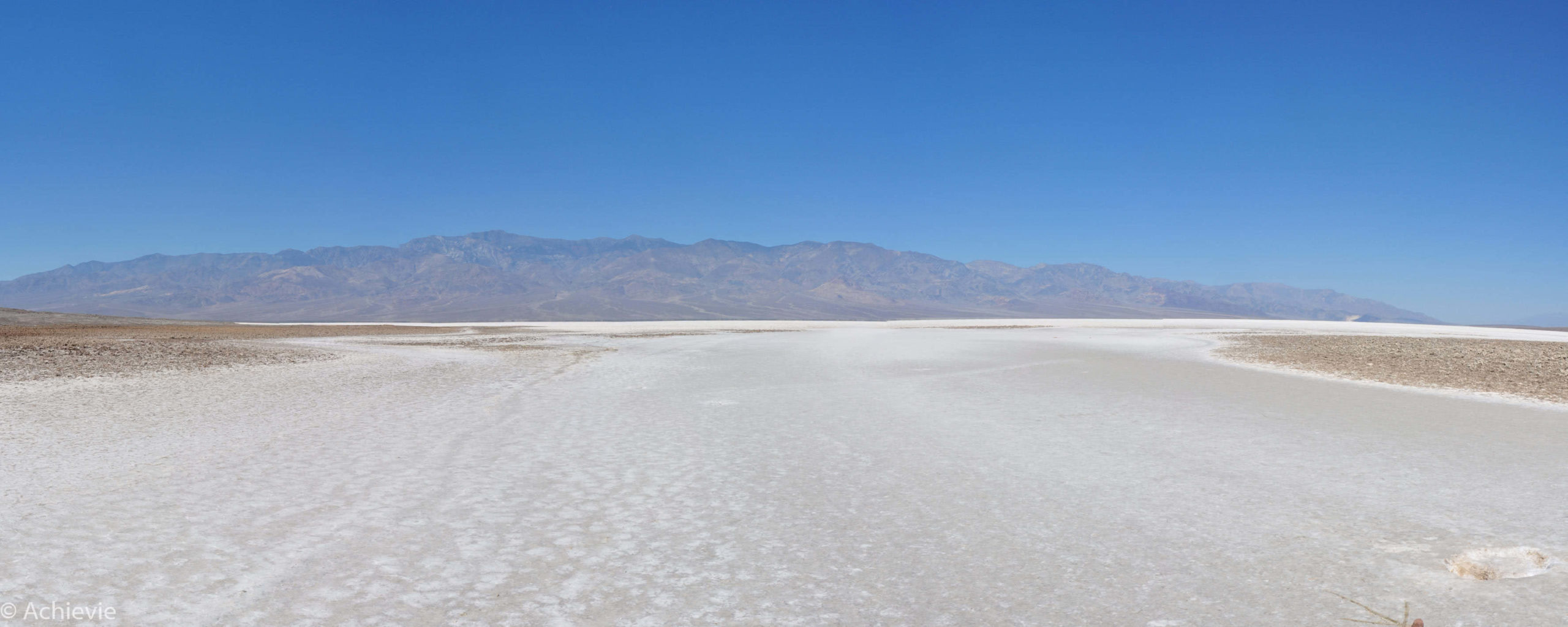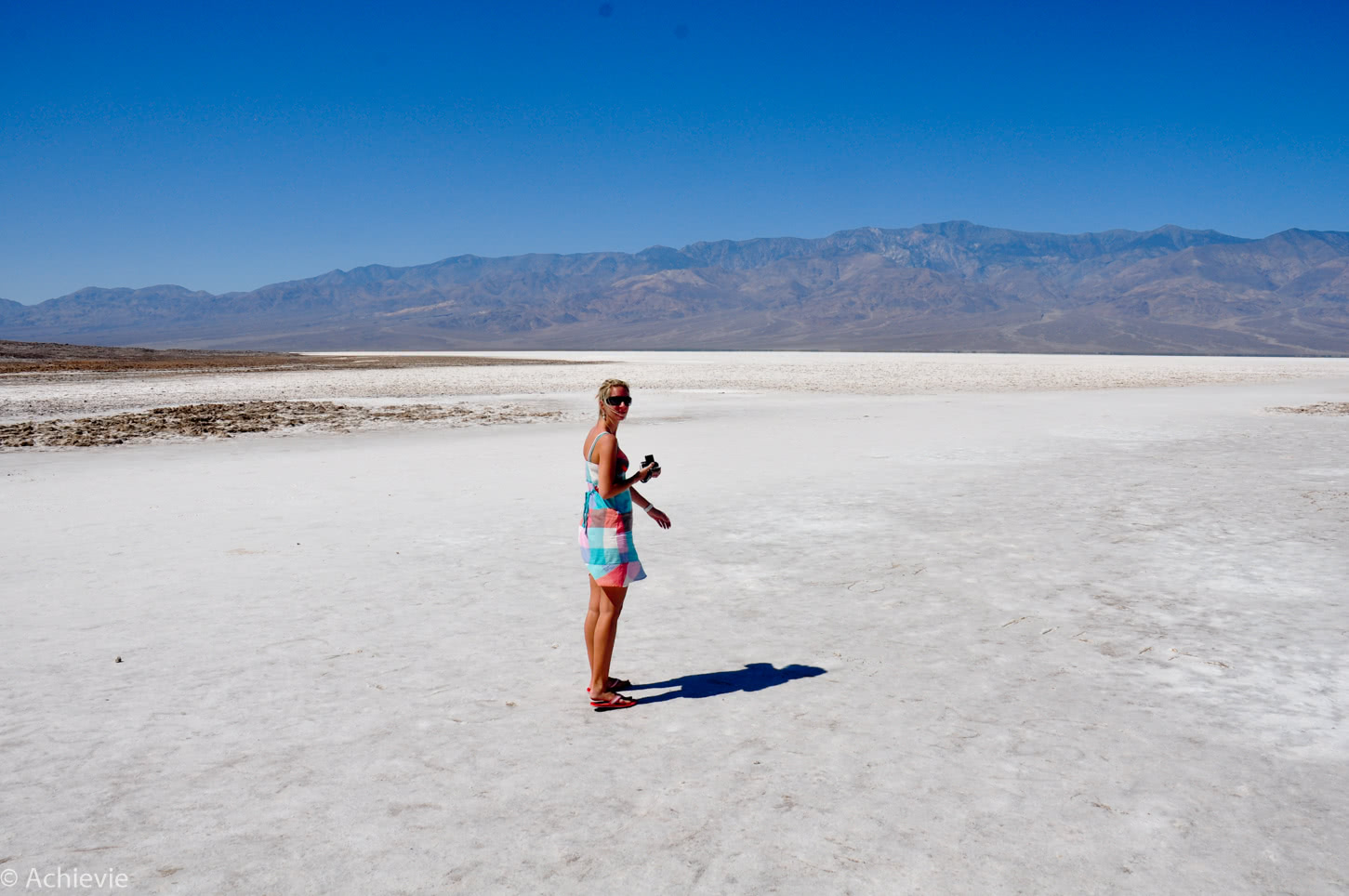 At Badwater Basin, we decided to go for it: we each took a bottle of energy drink and wanted to make it to the end of the walkway right in the middle of the salt flats. Our bottles were already empty before getting at the end of the walkway, so we just turned and got back to the car. We barely made it 😉