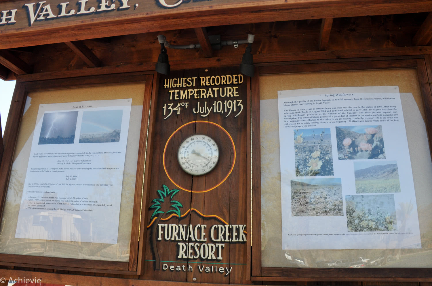 We have made great use of our convertible during our vacation, that’s for sure. But we didn’t pull down the roof when being in Death Valley! We started at the lovely Furnace Creek Visitor centre. When checking the thermometer it said 45°C or 110°F. Hot, hotter, hottest. We pulled ourselves back in the car and went up to Badwater Basin, the lowest point on Earth: 85,5m below sea level. Along the way we stopped at the Golden Canyon trail, but we only covered a few tens of metres, before turning back. Is was way too hot.
