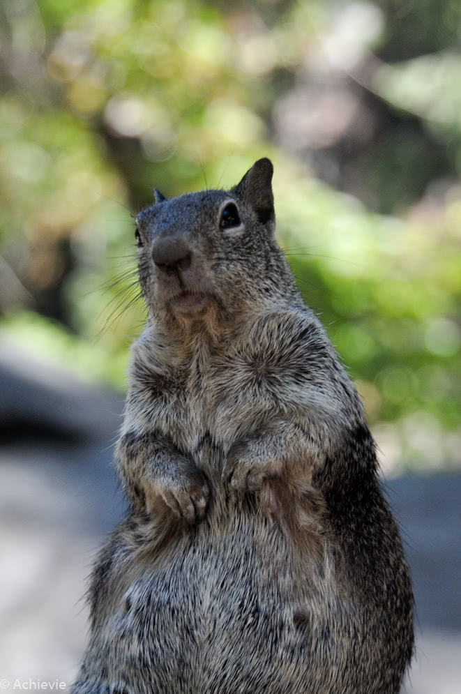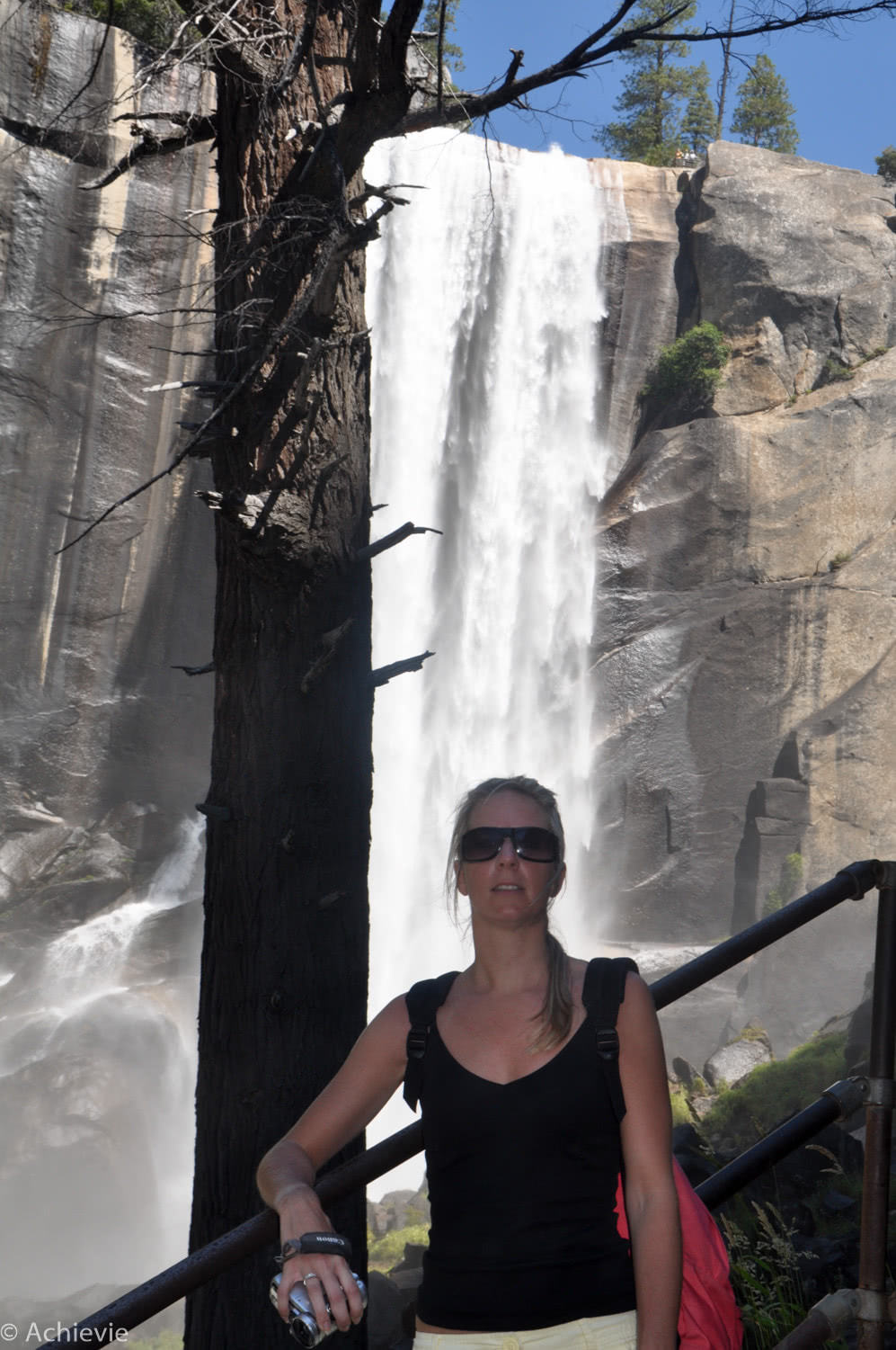 Then we parked the car and went for a short hike. We chose the Vernal Fall trail. It’s only about 1,3 km to the footbridge – where most of the people go to. The bridge already offers an excellent sight of Vernal fall, so a lot of people taking pictures here. Ok, so did we. Then we went up a little. Purpose was to get to the top of the fall, but as my husband got a little faint, we turned back about 500 metres before reaching the top. We still got amazing views though and met a very bad ass chipmunk on our track.